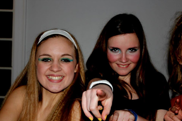 So first, there was the warm-up party with the girls. Capirinhas and strawberry daiquiries, pink and blue and yellow and multicolored everywhere, a feast of pizza and falafels and drinks and girls laughing, crimped and pimped hair, drunkenly dancing to "I'm So Excited" while doing aerobics on the floor, and even more drunkenly singing all the way to the school. Then continuing to party into the dead of night, with flashing colors and a sea of sweaty teenagers, that looked like something taken out of a bad aerobics video.
